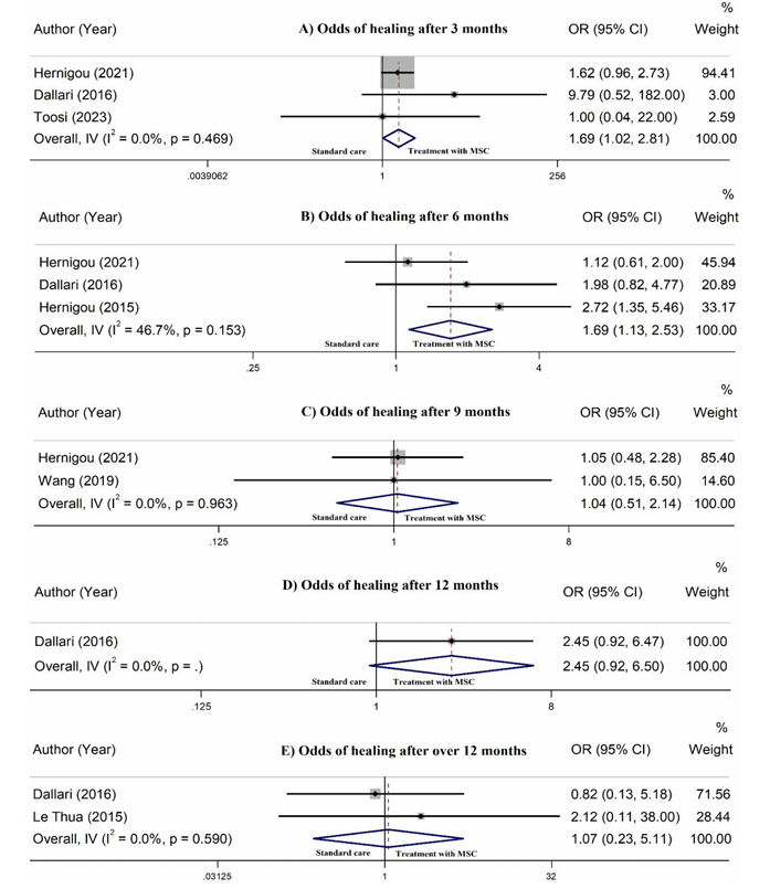 分析结果显示,间充质干细胞治疗效果显著:治疗3个月时,干细胞治疗组的骨折愈合率达到44%,显著高于接受传统自体骨移植治疗的对照组(26%)。随访至6个月时,干细胞治疗组的愈合率提升至73%,明显优于传统治疗组。尤为值得注意的是,在治疗9个月及以上时,干细胞治疗组的愈合率已超过90%。长期随访显示,干细胞治疗组的最终愈合率高达91%,且平均愈合时间仅为6.3个月,较传统方案缩短约1.5个月。若联合使用生物支架材料,平均愈合时间可进一步缩短至5.85个月。这意味着患者能更快地摆脱病痛,恢复正常生活,有效避免长期卧床导致的并发症。